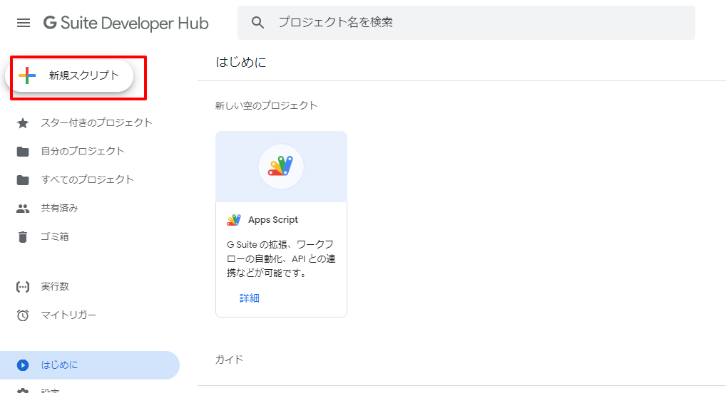 - 新しいGoogle Apps Scriptプロジェクトを作成する