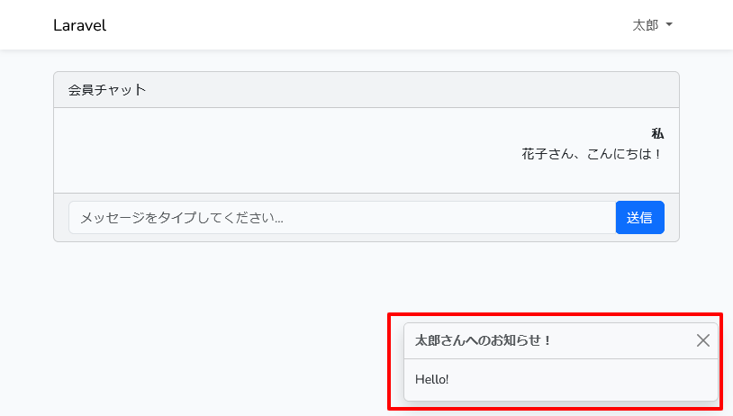 LaravelのNotificationはEメールやSMSなど多用なチャンネルへの情報発信に便利なものですが、その1つのチャンネルとしてbroadcastがあります。今回は、それを使用してチャットと同様にリアルタイムで情報をユーザーに発信します。