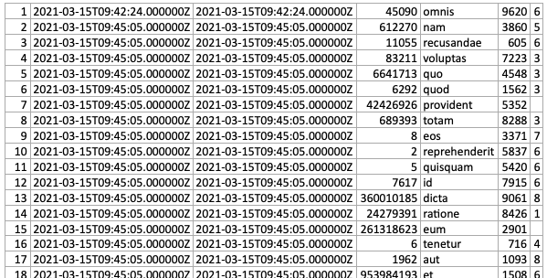 これでpurchase_historyテーブルから抽出したデータを全てエクスポートすることになります。試しにtinkerからエクスポートしてみます。