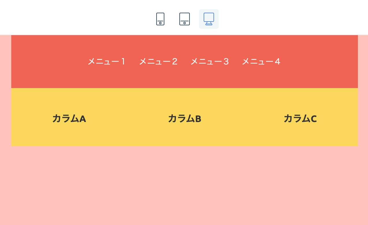 今回はシンプルに、ナビゲーションとカラムだけのメールを作成しました。先にPCビューの完成形をお見せします。