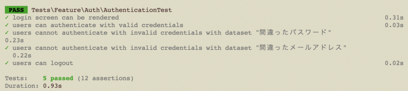 $ ./vendor/bin/pest --filter=AuthenticationTest //ファイル名を指定する場合