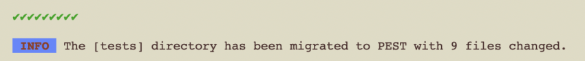バージョン3.0.0がインストールされました。最後に、以下のコマンドでPHPUnitからPestへの変換を実行します。