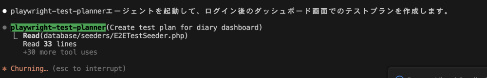 すると、以下のようにplaywright-test-plannerが起動しました。